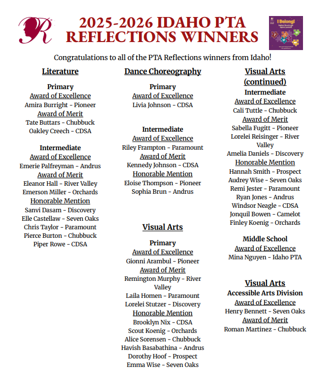 If you have any questions regarding reflections, please email Reflections@IdahoPTA.org