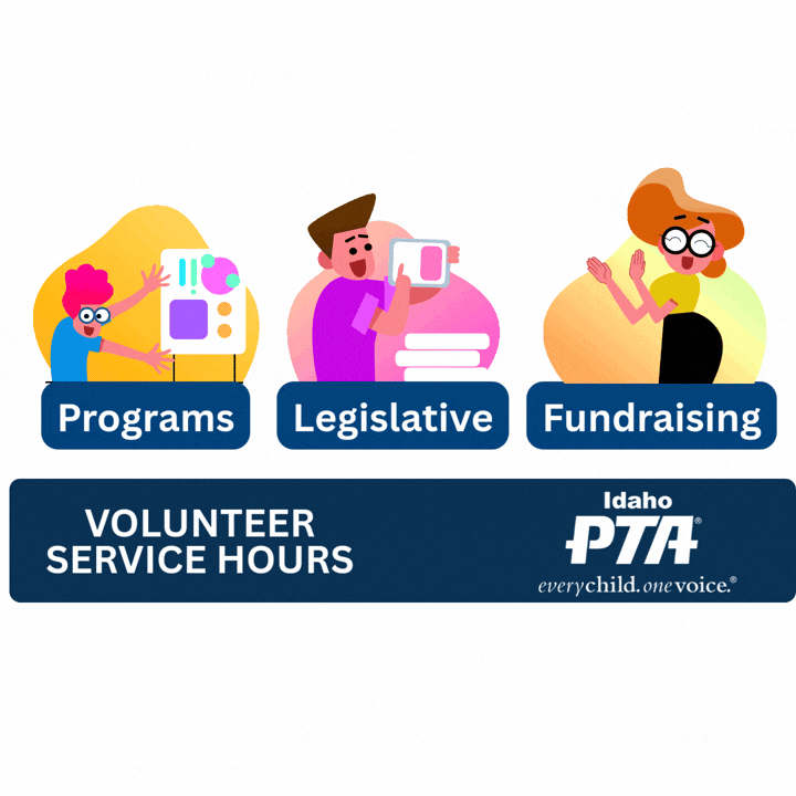 Every hour represents time, talent, and heart given for Idaho’s children. Reporting your volunteer service hours helps Idaho PTA demonstrate statewide impact, advocate for resources, and celebrate the incredible difference PTA volunteers make every year.